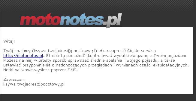 Chcesz zaprosić Znajomego do skorzystania z motonotes.pl?